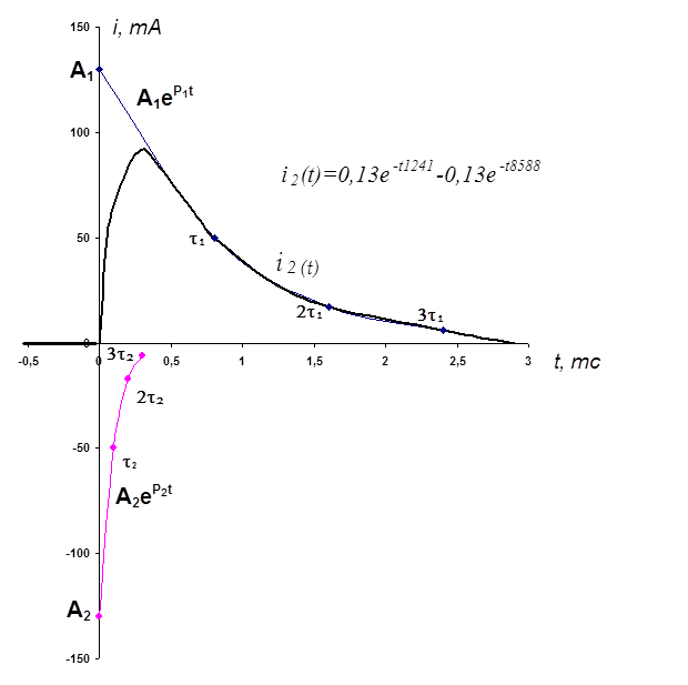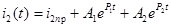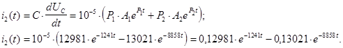 Корни вещественные разные значить переходный процесс апериодический затухающий. Запишем выражения для заданного тока в переходном режиме через принужденную и свободную составляющую :