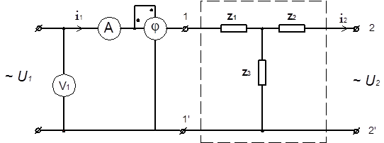 Цель работы : провести опыты ХХ ( холостого хода ) и КЗ (короткого замыкания ) в заданной схеме четырехполюсника; определить из опытов комплексы