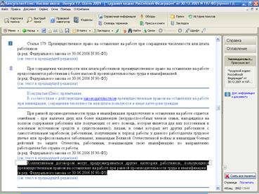 · быстрое получение дополнительной информации (судебной практики, консультаций, комментариев) к конкретной статье или фрагменту нормативного документа – с помощью особого значка на полях документа;