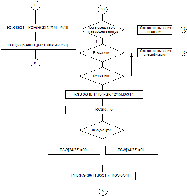 | 1 | Условия выполнения операции | Прерывание операций если есть средство с плавающей запятой R 1 и R 2 должны определять регистр 0, 2 ,4 или 6 |
