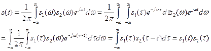 Таким образом, спектр произведения двух сигналов равен свертке их спектров умноженной на коэффициент