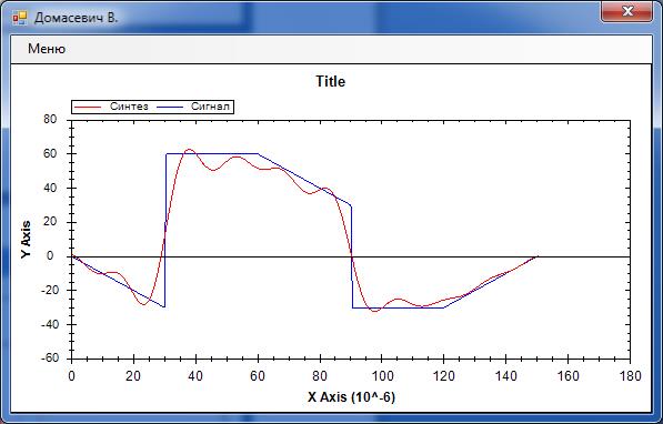Основной трудностью при выполнении курсового проекта являлся расчёт синтеза сигнала на основании его спектра, что было связано с громоздкостью аналитического выражения для спектра выходного сигнала, и следовательно, с трудностью расчёта его интеграла. Обычными методами интеграл рассчитать не удалось. Поэтому для этой цели была написана программа на языке программирования C Sharp. В которой для расчета интеграла был использован один из численных методов, а именно метод с автоматическим выбором шага по заданной точности, достоинствами которого является простота реализации, высокая точность и надёжность выполнения кода.