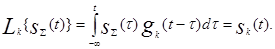 Определим вид оператора разделения Lk для системы с ЧРК. При использовании линейных фильтров с импульсными реакциями gk (t) и группового сигнала sΣ (t) вид оператора Lk следующий: