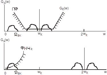 Для формирования ОБП используют фильтровый и бесфильтровый методы. При фильтровом методе ненужная боковая на выходе модулятора подавляется при помощи полосового фильтра. Фильтр должен обеспечивать значительное затухание в полосе подавляемой боковой и малое – в полосе выделяемой боковой. Полоса расфильтровки Δωр , определяющая переходную область, не зависит от значения поднесущей ωk , поэтому при выборе значения ωk исходят из сложности реализации фильтра. С ростом ωk сложность фильтра возрастает, и при Δωр ⁄ωk <10-2 необходимо применять высокодобротные кварцевые фильтры. Чтобы упростить реализацию фильтров, используют многократное преобразование частоты с тем, чтобы при каждом преобразовании обеспечивалось условие Δωр ⁄ωk >10-2 , допускающее реализацию полосовых фильтров на LC-элементах.
