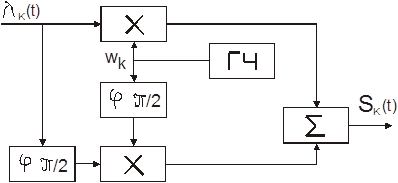 sk (t)=Аk[cos(ωk t)cos(Ωt) + cos(ωk t+0,5π)cos(Ωt+0,5π)].