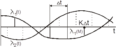 Рассмотрим один из способов формирования канальных сигналов в системе с ВРК. Сообщения λk , поступающие от источников, подвергаются дискретизации по времени так, чтобы отсчеты одного сообщения не совпадали с отсчетами другого (рис. 2.2.1,а). В соответствии с моментами отсчетов вырабатываются импульсы, параметры которых меняются в зависимости от значений сообщений сообщения в каждом отсчете. Рис. 2.2.1,б иллюстрирует систему, в которой пропорционально сообщению изменяется амплитуда импульсов. Канальные сигналы, образованные из сообщения λ1 , не совпадают по времени с канальными сигналами, образованными из сообщения λ2 .