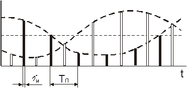 Рассмотрим некоторые из возможных видов модуляции импульсных последовательностей. Периодическая последовательность импульсов может быть представлена в следующем виде: