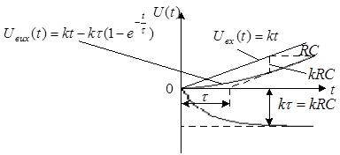 . З формули (3) видно, що для можливості використання RC - ланцюгів як інтегруючий ланцюг необхідно, щоб постійна часу RC була досить велика. Однак зі збільшенням RC зменшується амплітуда вихідного сигналів. Тобто на обличчя дві зовсім протилежних вимоги до RC.