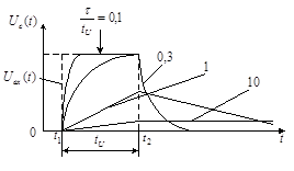 напруги на ємності буде зміняться по експонентальному законі.