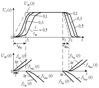 При дуже малих t форма імпульсів наближається до форми вхідного сигналу.