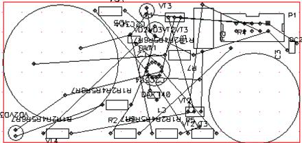 Была произведена генерация списка соединений, которая использовалась далее при упаковке схемы на печатную плату. Разместив вручную компоненты на поле печатного модуля, произвели трассировку последнего. Для оптимизации трасс и упрощения конструкции печатной платы произвели ручную корректировку отрассированного модуля.