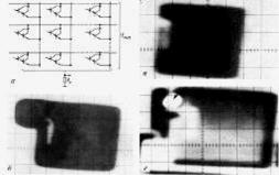 Рис.12. Принципиальная схема адресного формирователя БИС ЗУ (а) и его фотоответное изображение при пониженном (б) и нормальном (в) напряжении питания