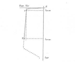 Точка 1 на характеристике соответствует минимальному току стабилитрона 1ст.min , при котором наступает пробой. Точке 2 соответствует максимальный ток стабилитрона Iст.max, достижение которого еще не грозит тепловым пробоем р- n- перехода. Iст.max ограничивается величиной максимальной мощности рассеяния Рmax.