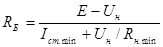 Напряжение Uн, определяемое напряжением Ucт, изменяется незначительно, в связи с чем его можно считать неизменным. Тогда при изменении тока нагрузки (сопротивления Rn) и напряжения Е ток Iст будет изменяться от некоторого минимального до максимального значения. Минимальному значению тока стабилитрона будет соответствовать минимальные значения Еmax и Rmin, а максимальному значению тока стабилитрона — максимальные значения Емах и Rmax. Расчет стабилизатора сводится к тому, чтобы выбрать величину сопротивления RБ, при которой через стабилитрон протекал бы ток Ict.min. соответствующий началу его рабочей характеристики. Балластное сопротивление определяется выражением