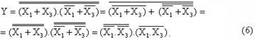 Производим преобразования структурных формул (2) и (4) в базисе И-НЕ, используя законы инверсии (формулы де Моргана):