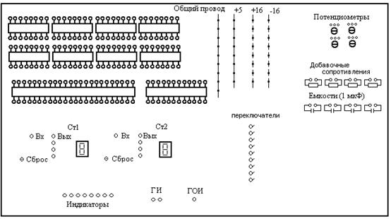 Лабораторный стенд, лицевая панель которого представлена на рисунке в прил. 1, цифровой вольтметр, приборы для измерения постоянных токов и напряжений, осциллограф типа С1–6В (или другой).