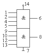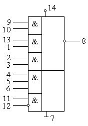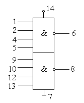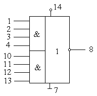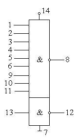 | Логический элемент 8И-НЕ | Два логических элемента 4И-НЕ | ||||||||||||||||||||||||||||||||||||||||||||||||||||||||||||||||
