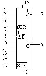 Если на входе стробирования присутствует низкий уровень, вывод соответствующего элемента будет переведен в высокий уровень независимо от состояния других входов. Если на входе стробирования присутствует высокий уровень, элемент работает как обычный 4ИЛИ-НЕ. |