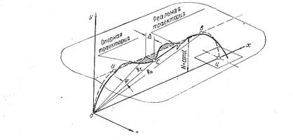 Первая задача — это задача движения беспилотного аппарата по заданной, т. е. вычисленной и поэтому известной траектории. Такие траектории принято называть фиксированными или опорными. Система радиоуправления в этом случае должна контролировать действительную траекторию движения, сравнивать ее с заданной и в случае их несовпадения (что обычно и имеет место) вырабатывать и передавать на борт беспилотного аппарата корректирующие команды. (Рис 5)