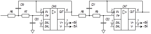 В качестве входной части используется повторитель напряжения на операционном усилителе для обеспечения необходимого значения входного сопротивления.