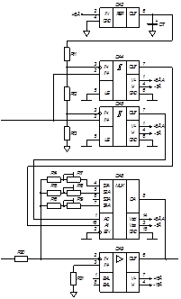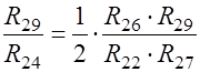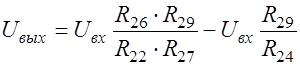 Чтобы сопротивление R24 не оказывало влияние на работу усилителя DA10, его целесообразно принять равным 50 ÷ 200 кОм, выбираем R24 = 100 кОм. Для получения единичного коэффициента преобразования DA2 выбираем R24 = R27 = R29.