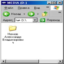 Выбираем диск D (D:), двойным щелчком заходим в него, щелкаем правой кнопкой мыши на пустом месте, в открывшемся меню выбираем “создать” – папку, и вводим имя папки - Немов Александр Владимирович.