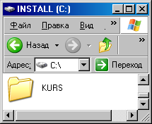 Выбираем диск С (С:), двойным щелчком заходим в него, щелкаем правой кнопкой мыши на пустом месте, в открывшемся меню выбираем “создать” – папку, и вводим имя папки - KURS.