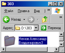 Выделить копируемый файл “Немов” находящийся (D:\303\Немов Александр Владимирович3)