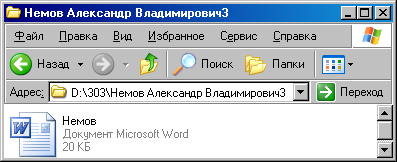 Пошагово выбираем Мой компьютер - > диск D -> 303 -> Немов Александр Владимирович3 - > записываем имя файла "Немов".