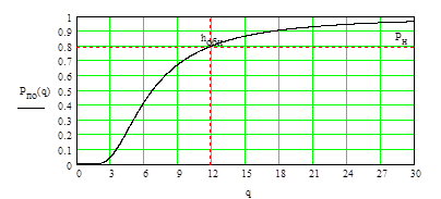 Рабочее отношение мощности сигнала к мощности шума, обеспечивающее заданную надежность Рн =0,8, находим из выражения:
