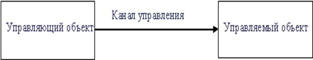 Такой процесс не учитывает состояние управляемого объекта и обеспечивает управление по прямому каналу (от управляющего объекта к управляемому). Подобные системы управления называются разомкнутыми. Информационную модель разомкнутой системы управления можно наглядно представить с помощью следующей схемы: