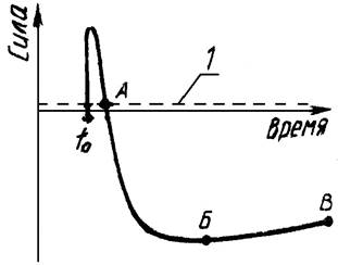 - точка Б характеризует максимальное значение результирующей силы, направленной вниз, в течение времени погружения;