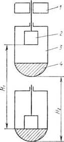 Чтобы приблизить условия испытания к условиям невесомости, необходимо уменьшить силу аэродинамического торможения контейнера, отнесенную к единице его массы. С этой целью контейнер с приборным оборудованием помещают внутри верхней части вакуумированной капсулы, которую сбрасывают с вершины башни в обычной атмосфере (рисунок 1). По мере торможения капсулы о воздух внутренний контейнер постепенно приближается к переднему концу капсулы, оставаясь все время в состоянии свободного падения. Для реализации описанного метода испытания высота башни должна быть около 300 м, что обеспечивает имитацию невесомости в течение почти 8 с.