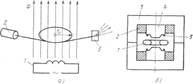 Рисунок 7 - Сечение ускоряющего синхрофазотрона: а — объемный резонатор (1 — изолятор; 2 — корпус резонатора;3 — ферритовые кольца; 4 — вакуумная камера; 5, 6 — коаксиальные кабели); б — дрейфовая трубка.