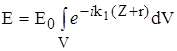 Определим поле в произвольной точке пространства как сумму полей создаваемых в этой точке каждой элементарной областью цилиндра взаимодействия. Для нахождения такой суммы нам необходимо знать амплитуду и фазу поля создаваемого любой элементарной областью цилиндра. Если мы положим равным нулю фазу волны при Z = 0, то фаза волны излучаемой областью (r,q,Z) будет