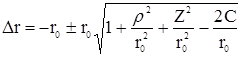 Объединяя выражения получаем квадратное уравнение относительно r. Корни этого уравнения равны: