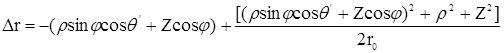 Применим теорему косинусов к треугольнику, образованному точками (r0 ,q0 ,Z0 ), (r,q,Z) и началом координат, получаем: