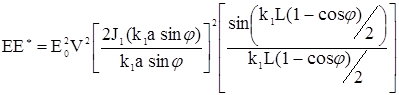 Чтобы получить выражение для интенсивности излучения второй гармоники из рассматриваемой области, предположим для простоты, что взаимодействие происходит в цилиндре с радиусом a (естественно не превышающего раствора диаграммы направленности на высоте F слоя) и длиной L (составляющей несколько длин волн мощного излучения). Предположим также, что внутри цилиндра обе волны и плоские фазовые фронты их параллельны друг другу, а интенсивности постоянны во всем объеме.