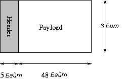Пакет ATM, определенный специальным подкомитетом ANSI, должен содержать 53 байта: 5 байтов занято заголовком, остальные 48 - содержательная часть пакета.