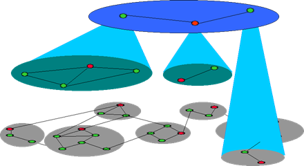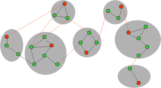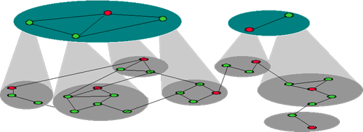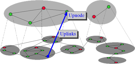Таким образом, граничные узлы имеют связь с теми узлами верхнего уровня, которые на их уровне представлены их соседними граничными узлами. Эти связи между граничным узлом группы нижнего уровня и узлом, представляющим соседний граничный узел на верхнем уровне, называются UpLink’ами.