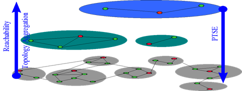 Информация передается с верхних уровней на нижние с помощью PTSE верхних уровней. Узлы логических групп передают PTSE лидерам своих дочерних PG, которые, затем распространяют эту информацию среди членов своей группы. Эта информация необходима для работы по поиску маршрутов узлами нижнего уровня в домене PNNI маршрутизации. LGN передает все имеющиеся у него PTSE в PGL.
