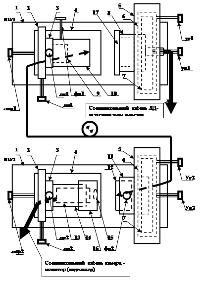 – взаимную юстировку торца исследуемого световода и телекамеры (ЮУ2).