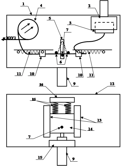 – пружины 11, которые служат для натяжения исследуемого световода.
