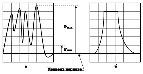 3.5. Отметить на осциллограмме положение уровня «черного» (рис. 8, а ) и отсчитать от него уровень, соответствующий минимальной Рmin и максимальной Рmax яркости изображения в пределах светящегося пятна на торце световода. Отсчет проводить в делениях, нанесенных на экран осциллографа. Данные измерений занести в таблицу 1.