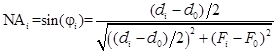 Значение числовой апертуры вычисляется из элементарных тригонометрических соображений по измеренному значению расстояния: