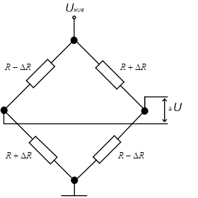 За мостовою схемою тензоперетворювачі вмикають в одне, два або чотири плеча. В останньому випадку у два протилежних плеча входять перетворювачі, що реагують на ту саму деформацію (наприклад, розтягування), а у два інших - перетворювачі, що реагують на деформацію протилежного знака (стискання). Міст із двома й чотирма тензоперетворювачами має чутливість відповідно у 2 і 4 рази більше, ніж міст з одним тензоперетворювачем.