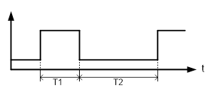 Номінальна вихідна частота мікросхеми 35 Гц. Пристрій працює з фіксованою довжиною імпульсу Т1, яка складає 10 мс. Тоді