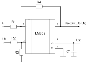 Рисунок 3.7 – Схема диференційного включення операційного підсилювача LM358