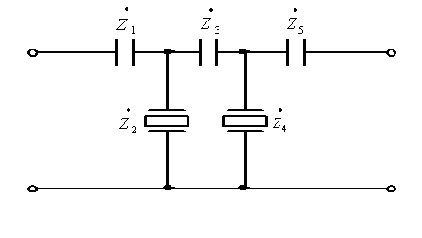 - с кварцевыми резонаторами в поперечных и продольных ветвях. Схема кварцевого фильтра первого типа изображена на рисунке 11.