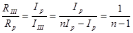 При измерении тока I, который в п раз больше тока Iр в рамке прибора, сопротивление шунта RIII рассчитывают из условия равенства падений напряжения: